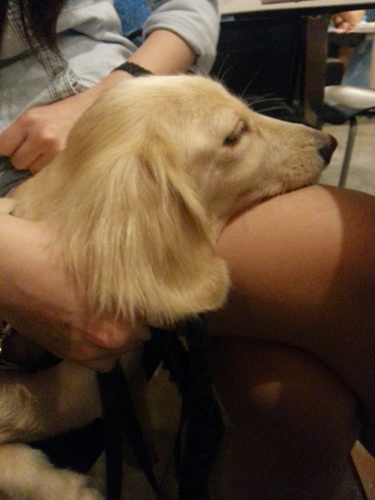 Throughout the entire 3 hours plus we were there, Froski was totally stressed up being the only cat in a cafe full of dogs. His face was literally a 囧 and he moved around slowly in a leopard crawl motion. Poor boy! :(
